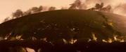 The fiery clouds that were produced by the City Destroyers entering Earth's airspace were created by injecting gray painting into a large water tank, with an internal lighting rig a bluescreen backdrop.[9] Multiple takes were then composited into live action location shots.[8] There were difficulties in depicting the effect on the early televised views of the Destroyers entering the airspace of Siberia and elsewhere in which they had to be played back on set many months before any final visual effects shots would be ready.[8]