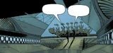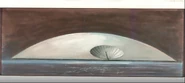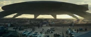 A City Destroyer is, by Earth standards, of staggering size, shaped overall like a concave saucer, the Destroyer's main body was 15 miles (or 25 kilometers) in diameter, and its height from the center up is of just under four kilometers, tapering out to a single kilometer on the brim. The brim is not perpendicular to the bottom of the ship; instead, the edge of the bottom expands outward slightly before uniting with the upper dome. The upper dome is not perfectly smooth: the control tower, a wafer-shaped structure longer and taller than it is wide (though not so tall as to be the ship's tallest point), protrudes from a dish-shaped indentation near the edge roughly three or four kilometers in diameter. The underside of the ship is not uniform either: it is arranged in a symmetrical, bas-relief design not unlike the petals of a flower, with street-like corridors separating warehouse-sized blocks.