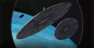 The Destroyers were created in three different scales: a four-foot version for wide space shots, a twelve-foot "hero" model for the majority of shots, and a massive thirty-five foot section representing one sixth of the ship for closeups.[8]
