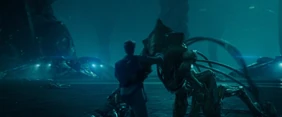 The pilots were then caught in the Queen's telekinetic control which formed a massive shield of other fighters that protected the Queen. However, Jake found a way to escape the Queen's control radius by overheating their fighters' engines. With the Queen left vulnerable to their previous attack, Jake and the other pilots fatally gunned down the Queen and caused the end to the invasion.