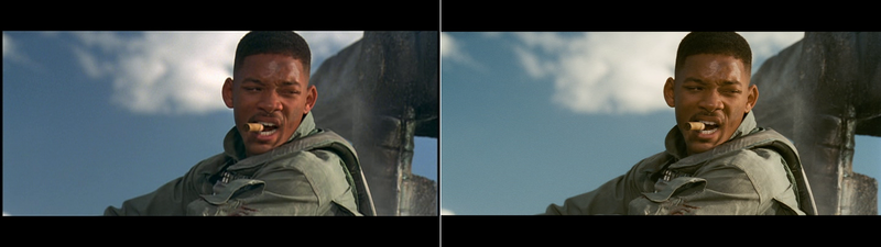 In 2016, a new "20th Anniversary Edition" of ID4 was released on Blu-ray and DVD. This edition advertises itself as a "newly restored edition". Since I now own this edition on DVD, I did a comparison of the new transfer with the old DVD transfer.