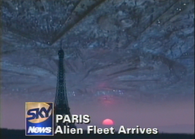 In the early hours of July 2, a 550 km wide alien spacecraft dubbed the "mothership" entered Earth's orbit. The mothership's arrival was detected by human deep space surveillance networks such as the SETI Institute and the United States Space Command. As the mothership came closer to Earth, its arrival caused human satellites to become impaired and disrupted communications across the planet. After the massive vessel settled into orbit, it deployed thirty-six saucer-shaped "City Destroyer" spacecraft, each 15 miles (24 km) wide, and taking position over thirty-six of Earth's major cities, either nation capitals or cultural centers such as New York City and Jerusalem. The aliens made use of human satellites to relay signals between vessels and coordinate their attack.