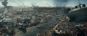 A majority of Asia, Europe, the Middle East, parts of Africa and the North American eastern seaboard were heavily devastated by the invasion. Cities such as London, Paris, Kuala Lumpur, Dubai, Washington and Singapore most especially suffered from either being lifted by the Harvester mothership's gravitational pull or severely damaged by the massive ship's landing or from the fallen levitated debris.